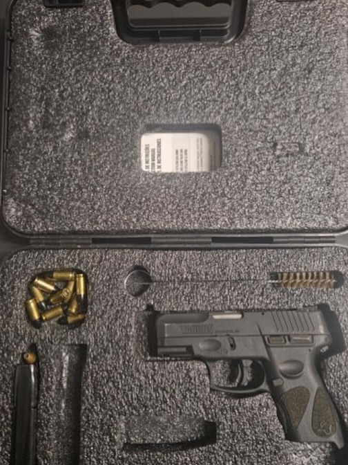 Os policiais se deslocaram até o endereço indicado e, pela grade do portão, visualizaram uma maleta compatível com acondicionamento de arma de fogo. Após autorização, verificaram que se tratava de uma pistola Taurus G2C calibre 9mm, acompanhada de um carregador e 23 munições.
