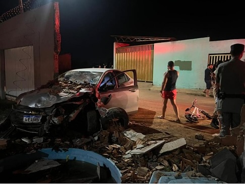 Carro desgovernado derruba muro e invade quintal após atingir veículos estacionados em Formosa