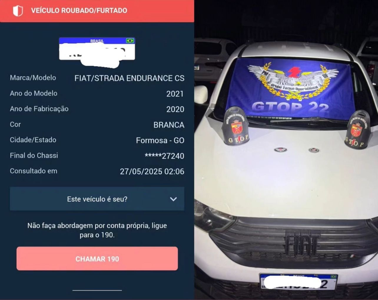 Ação rápida da PM recupera veículo roubado com violência e prende dois suspeitos em Formosa