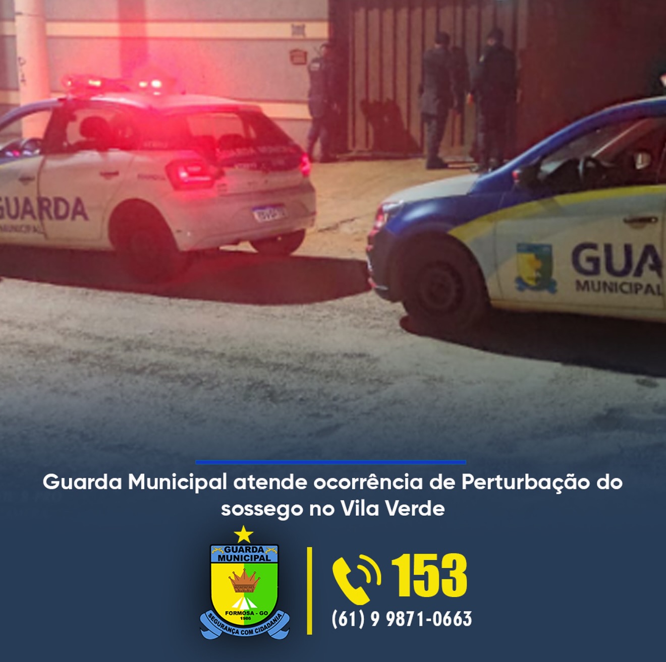 Por volta das 22h desta segunda-feira (11), equipes da Guarda Municipal de Formosa foram acionadas para atender uma ocorrência de perturbação do sossego na Rua 4A, no Parque Vila Verde.