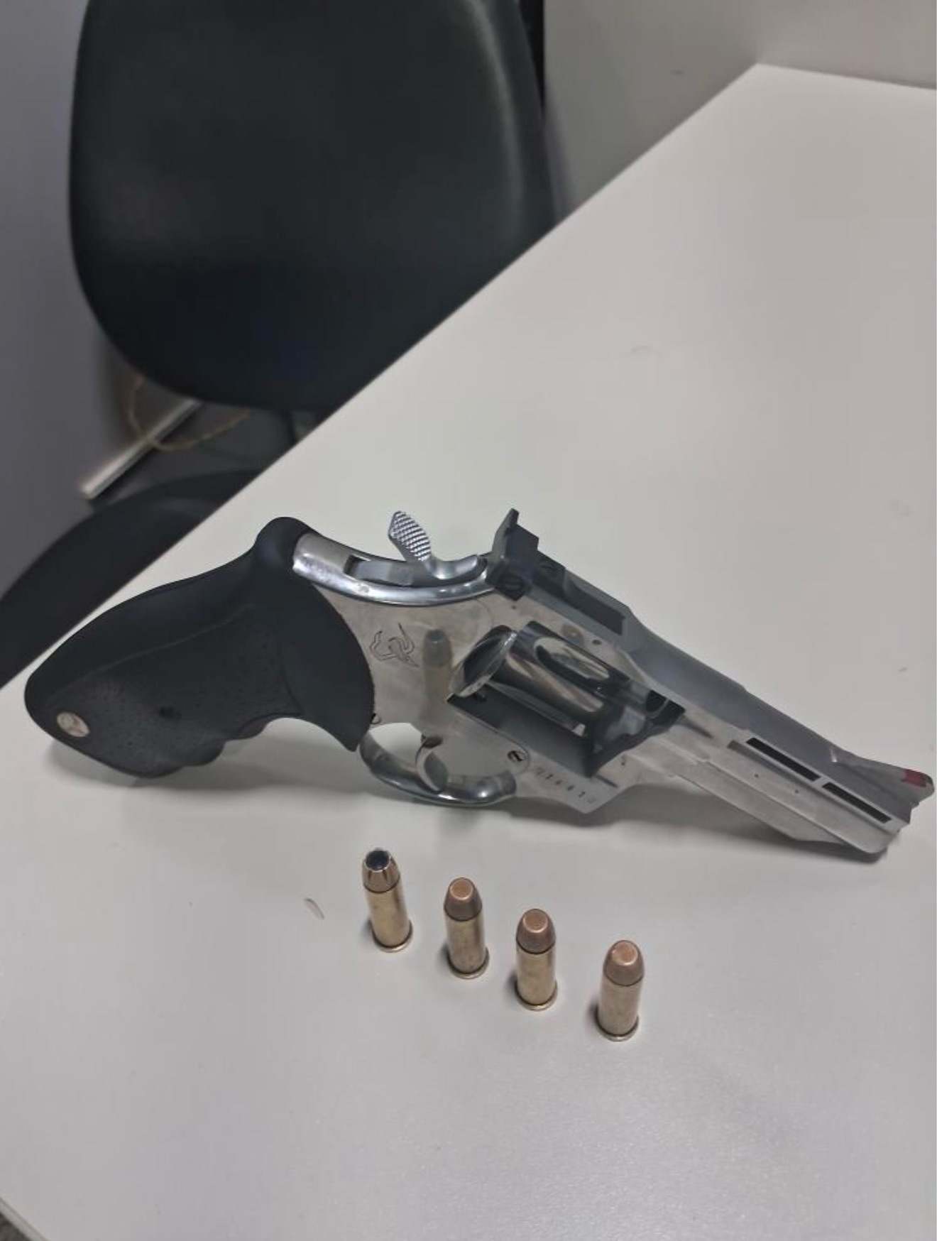 Durante a revista, os policiais encontraram um revólver calibre .38 com quatro munições no bolso da bermuda do suspeito. Quando questionado, ele alegou que a arma era para sua “segurança pessoal” e também para “impressionar mulheres em festas”.